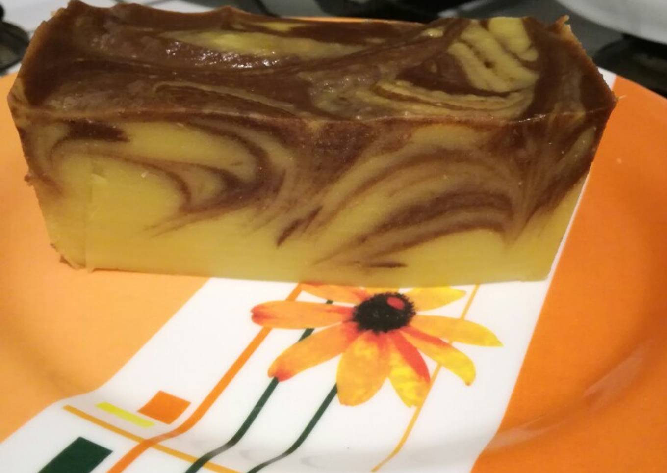 - Colocar la preparación en un recipiente. Si queremos hacer la versión marmolada, a una parte de la preparación le agregamos cacao, y luego la mezclamos.