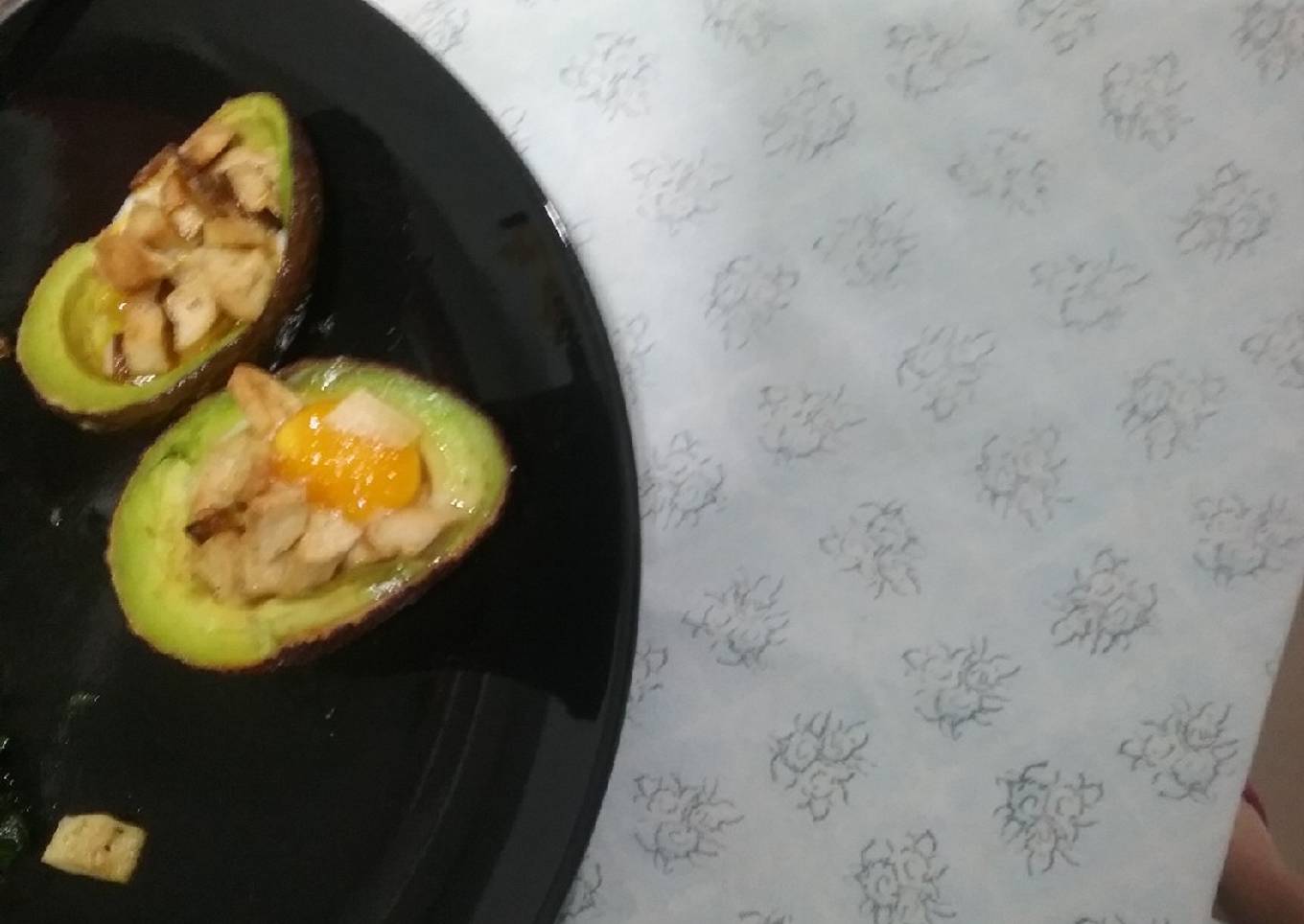 - Poner las salchichas y puerro en el aguacate, y un huevo de codorniz en cada mitad con un poco de sal