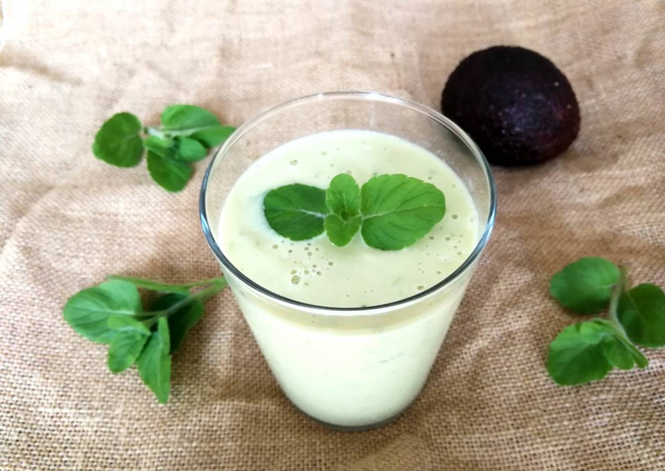 Batido de aguacate con bebida vegetal de soja y poleo menta
