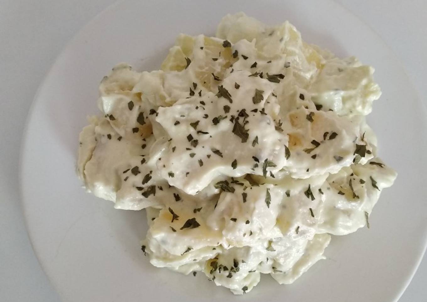 - Mezclar las patatas con la mahonesa y decorar con perejil.