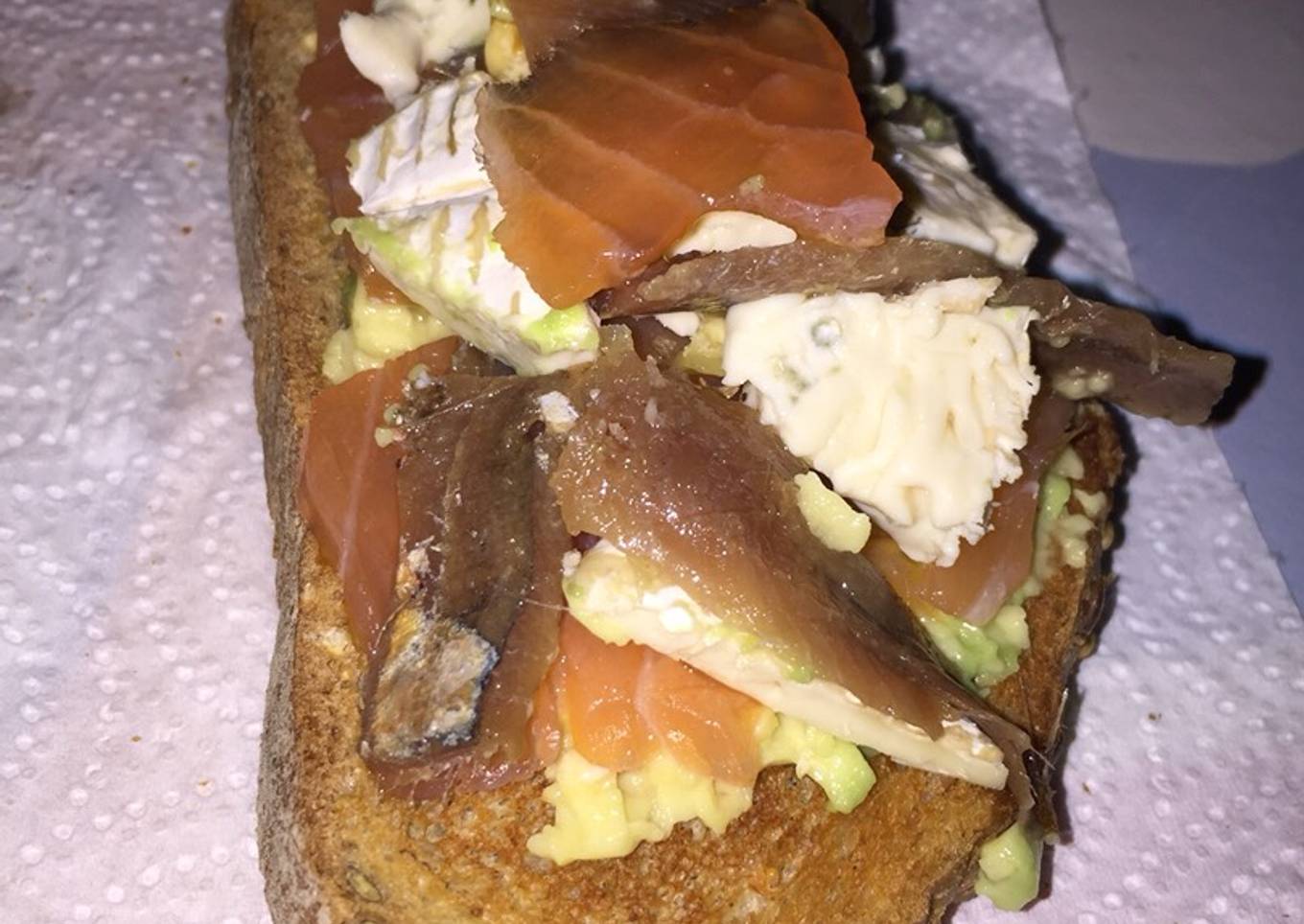 Steps to make to make Tostada de aguacate, anchoas y queso