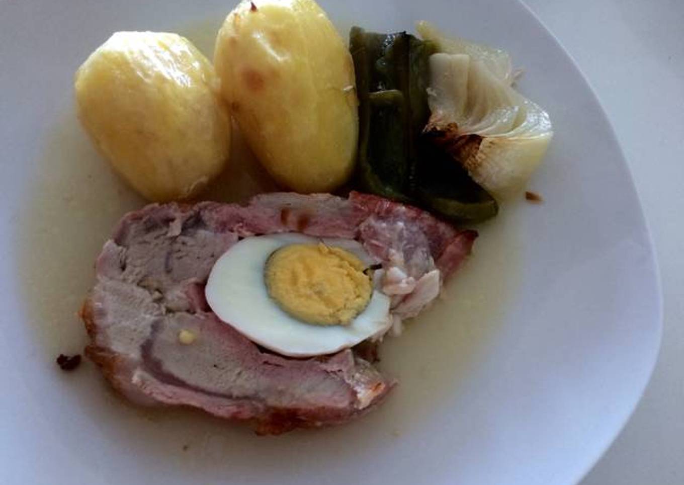 - Cortar en rodajas y servir con papas, morrón y cebolla al horno. Servir con el juguito.