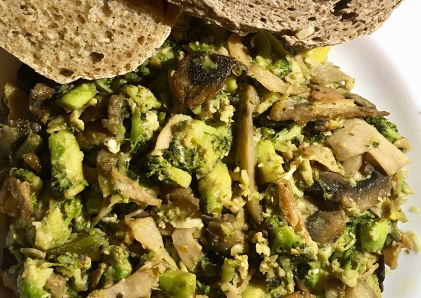 - Salteamos los champiñones, los espárragos sin la punta, brócoli con aceite de oliva, sal, pimienta y pimentón