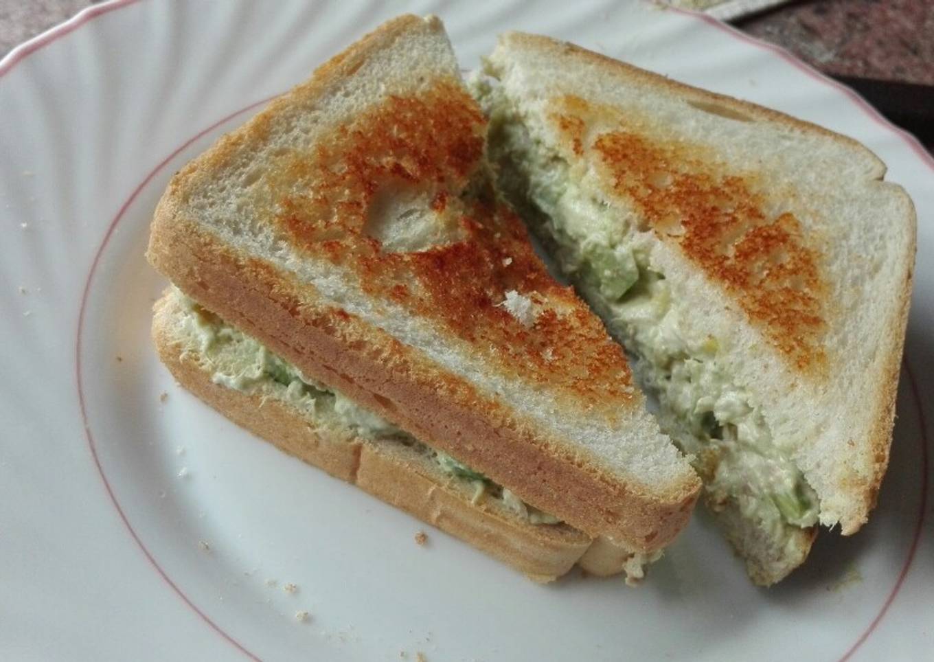 - Echar la mezcla en el pan bimbo y tapar con otra rebanada.
