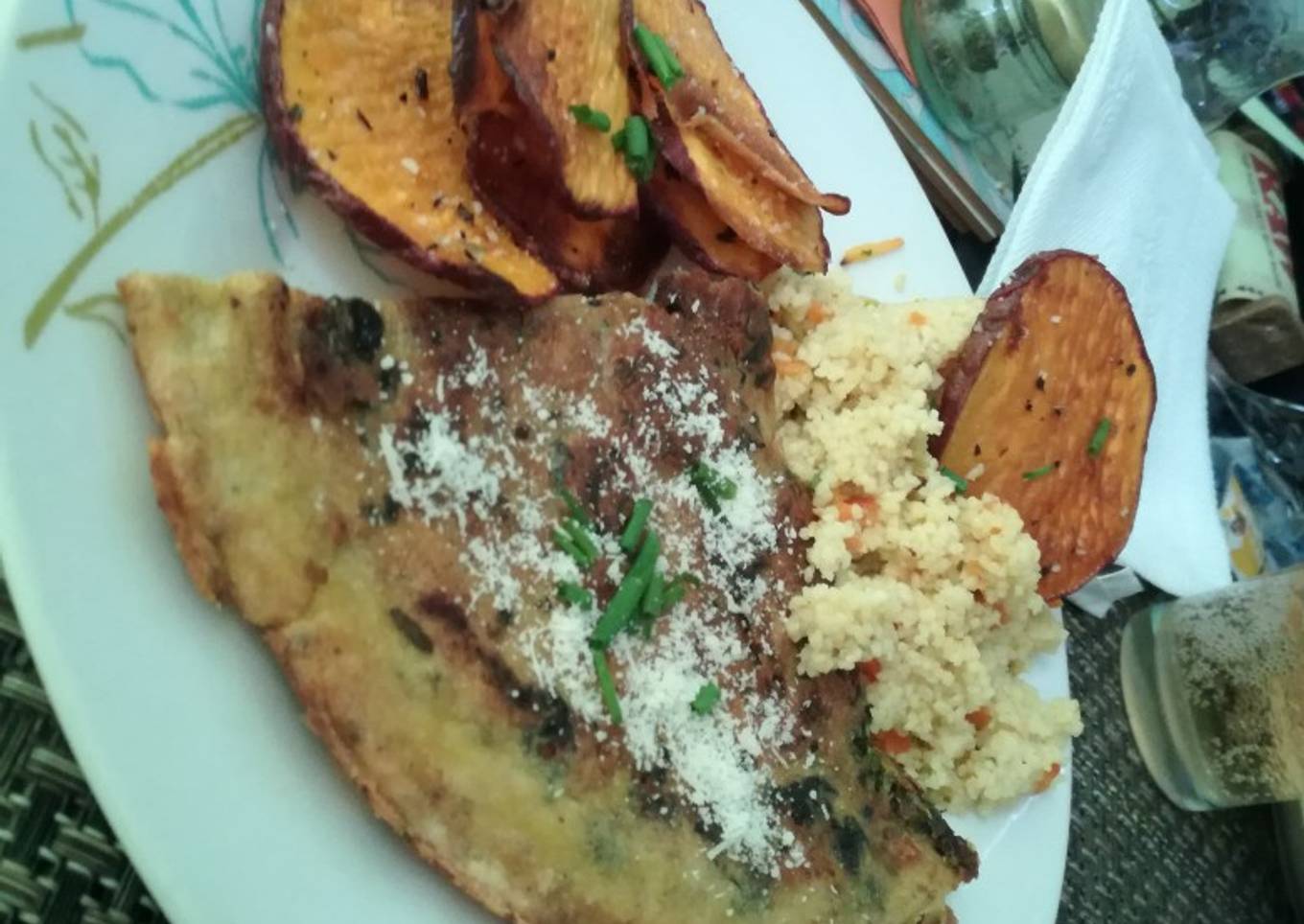 Tortilla de Espinacas con Cuscus y Camote frito :P