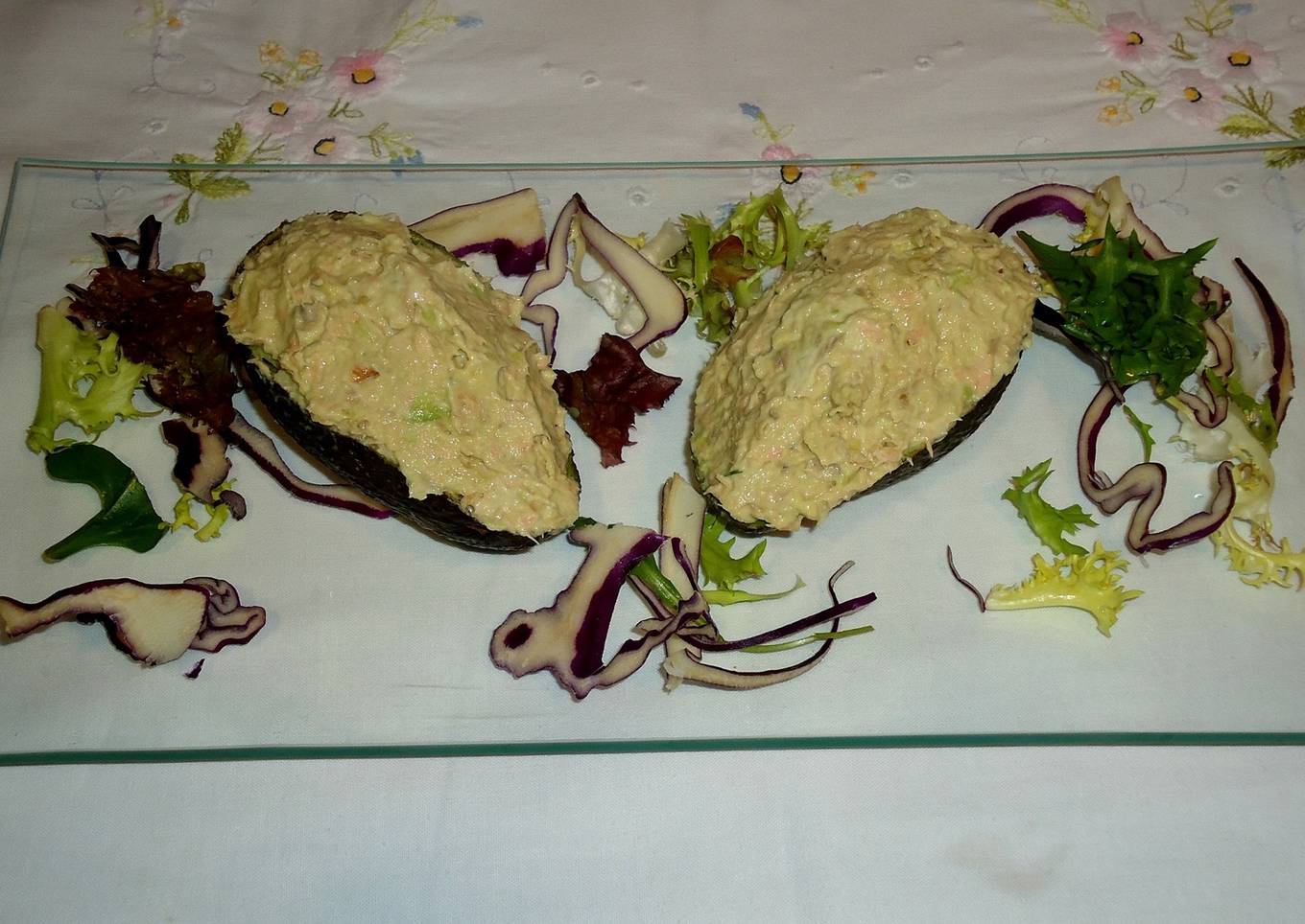 - Rellenar con esta mezcla las mitades de los aguacates y guardar hasta el momento de servir. Listo