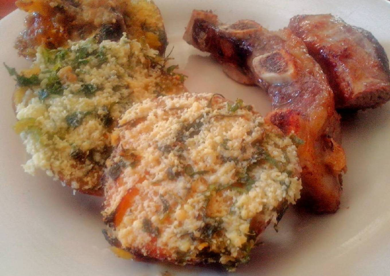 - mezclar el perejil el ajo y el queso y espolvorear sobre las batatas. poner pedacitos de manteca sobre la preparacion.